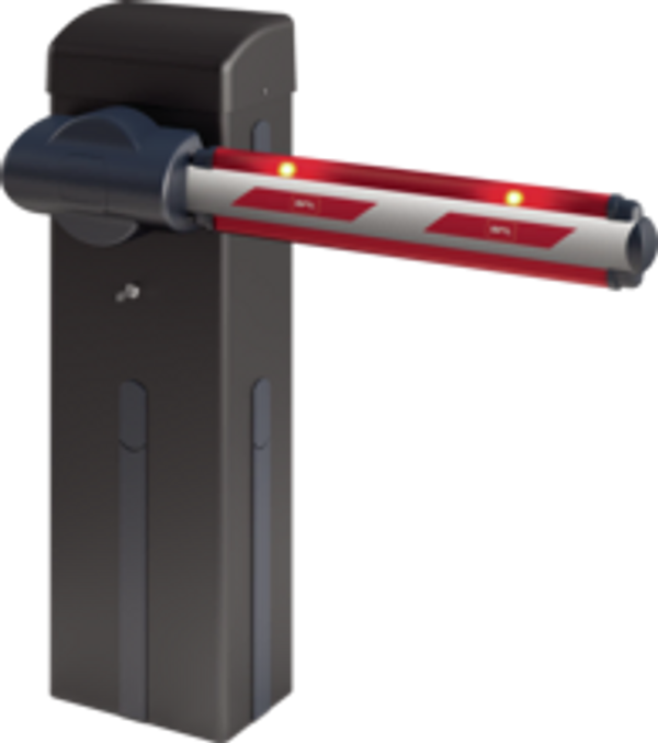 Barrier with 24 V motor for opening up to 3,0 m wide and opening time 4 s. Impact resistance by means of encoder.